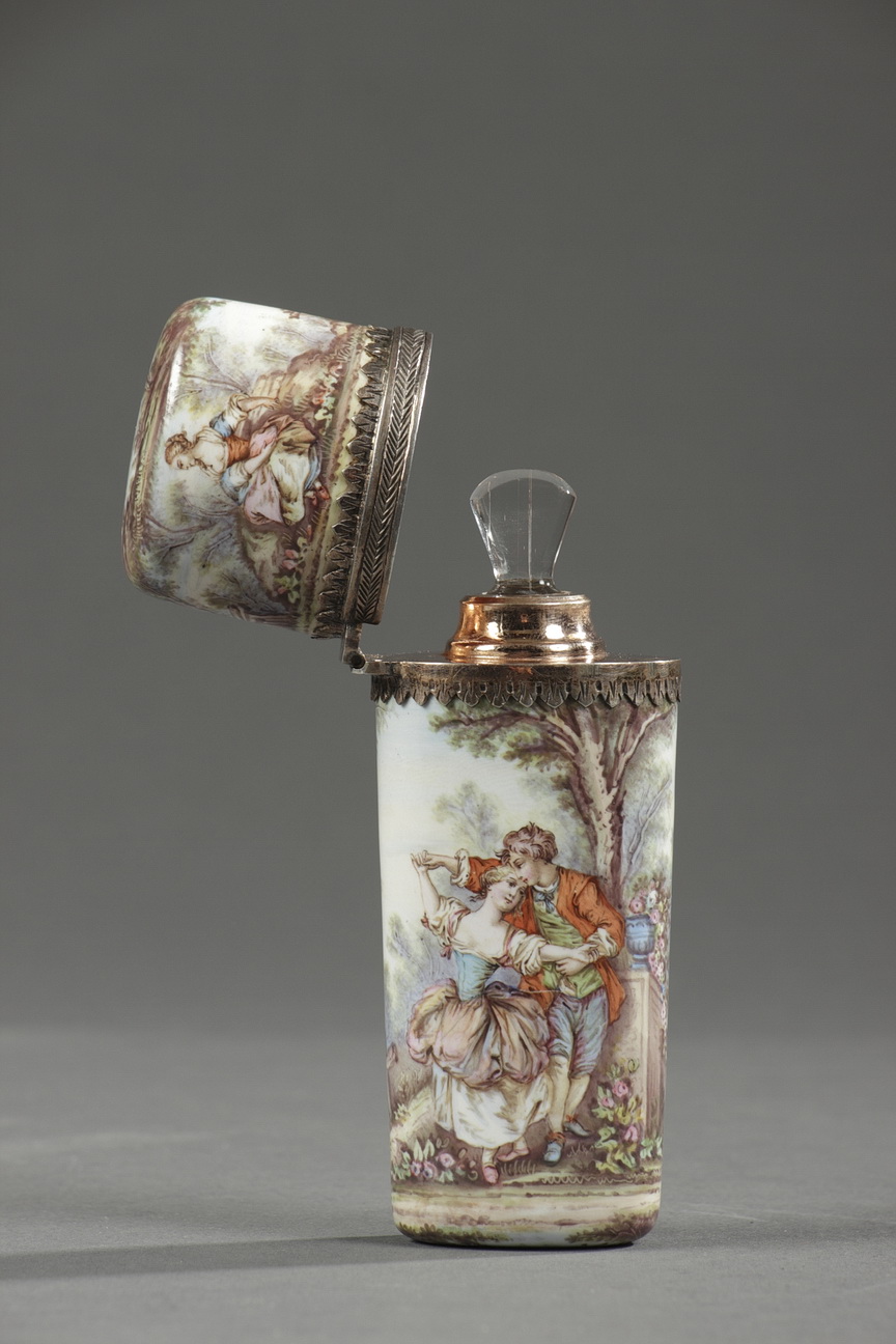 19TH CENTURY ENAMEL FLASK, Louis XVI style