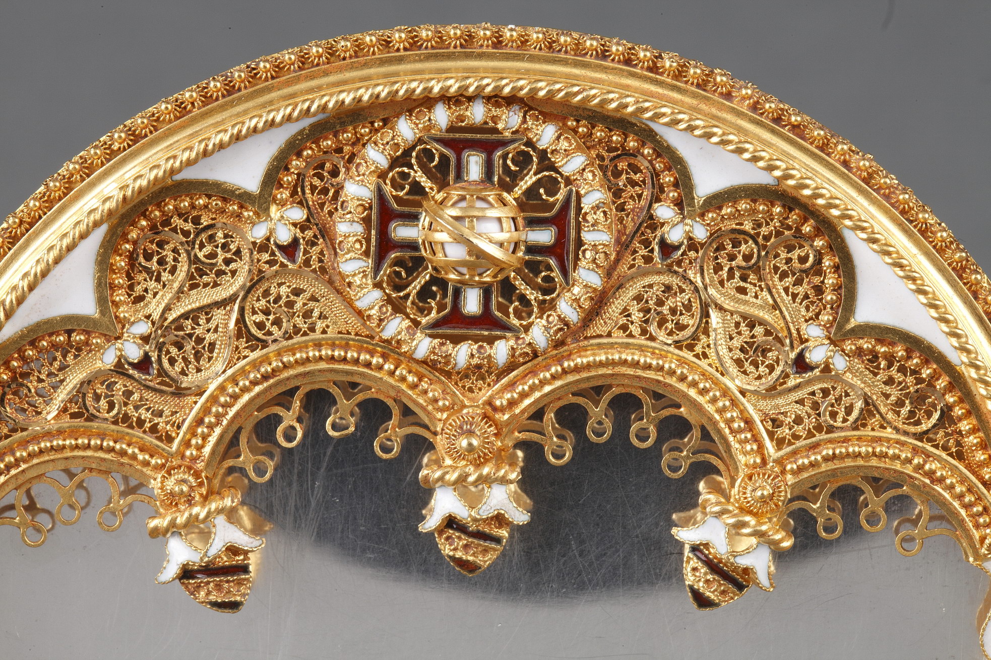 Gold and enamel frame with cross and globe decoration